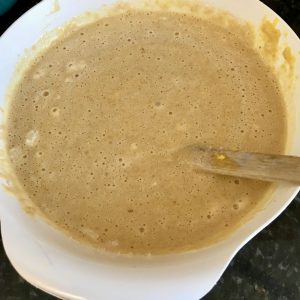 - Pour mixture into prepared tin and place in the oven for around 35 minutes or when cooked. Test with a skewer. If it comes out clean and dry, it is cooked.